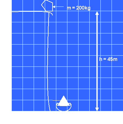 Ep = mgh = 200kg (9.81m/s2) (45m) = 88290 J = 8.8e4 J