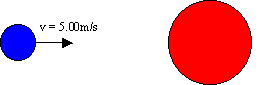 Example: The following diagram shows a small blue ball with a mass of 0.250kg moving at a velocity of 5.00m/s. It hits a 0.800kg red ball that is initially at rest. If the balls hit each other head on as an isolated system, and the collision is elastic, how fast are the balls going after the collision?