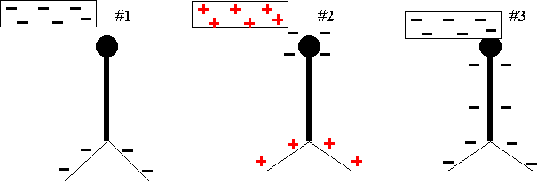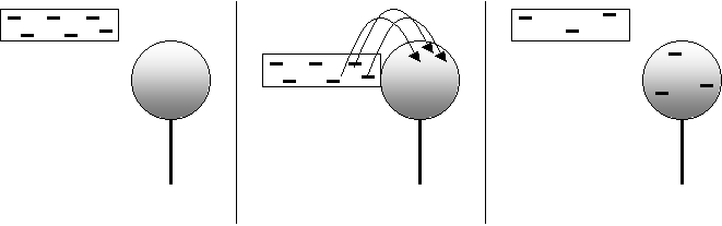 by conduction. The leaves will stay spread apart even if you remove the object.