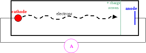 · We would expect that not as many electrons will make it to the anode, so the current might drop off a bit.