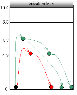 o At the ionization level the electron has gained so much energy that it flies out of the atom, leaving an ion behind.