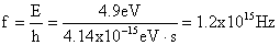 · So, the final answer is that we will see frequencies of 1.2 x 1015 Hz, 1.6 x 1015 Hz, and 4.3 x 1014 Hz. These frequencies correspond to the release of 4.9eV, 6.7eV and 1.8eV.