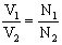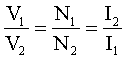 · It represents a set of ratios between the voltage (V), currents (I), and number of windings (N) in the primary (1) and secondary (2) coils.
