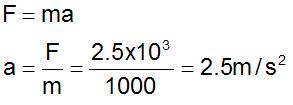 Example 2: Determine the acceleration of a 1000 kg car if a 2.5e3 N force acts on it?