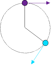 - At any particular instant in time, the velocity of the bob spinning in a circle is pointing in the same direction as the tangent line to the circle.