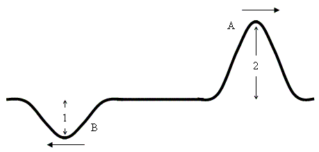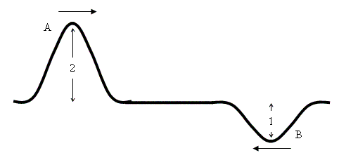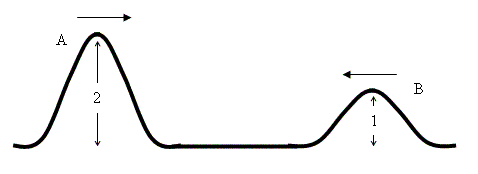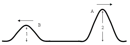 Example 1: The two wave pulses shown below are moving towards each other. Sketch what will happen when they interact.