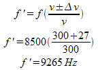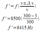 Example 1: A person is running around screaming at a frequency of 8500 Hz after hitting his thumb with a hammer. It is a cold day and the speed of sound is 300m/s.