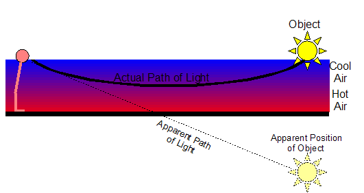 - The different temperatures of the air results in different densities for the layers of air. This results in each air layer having a different index of refraction!